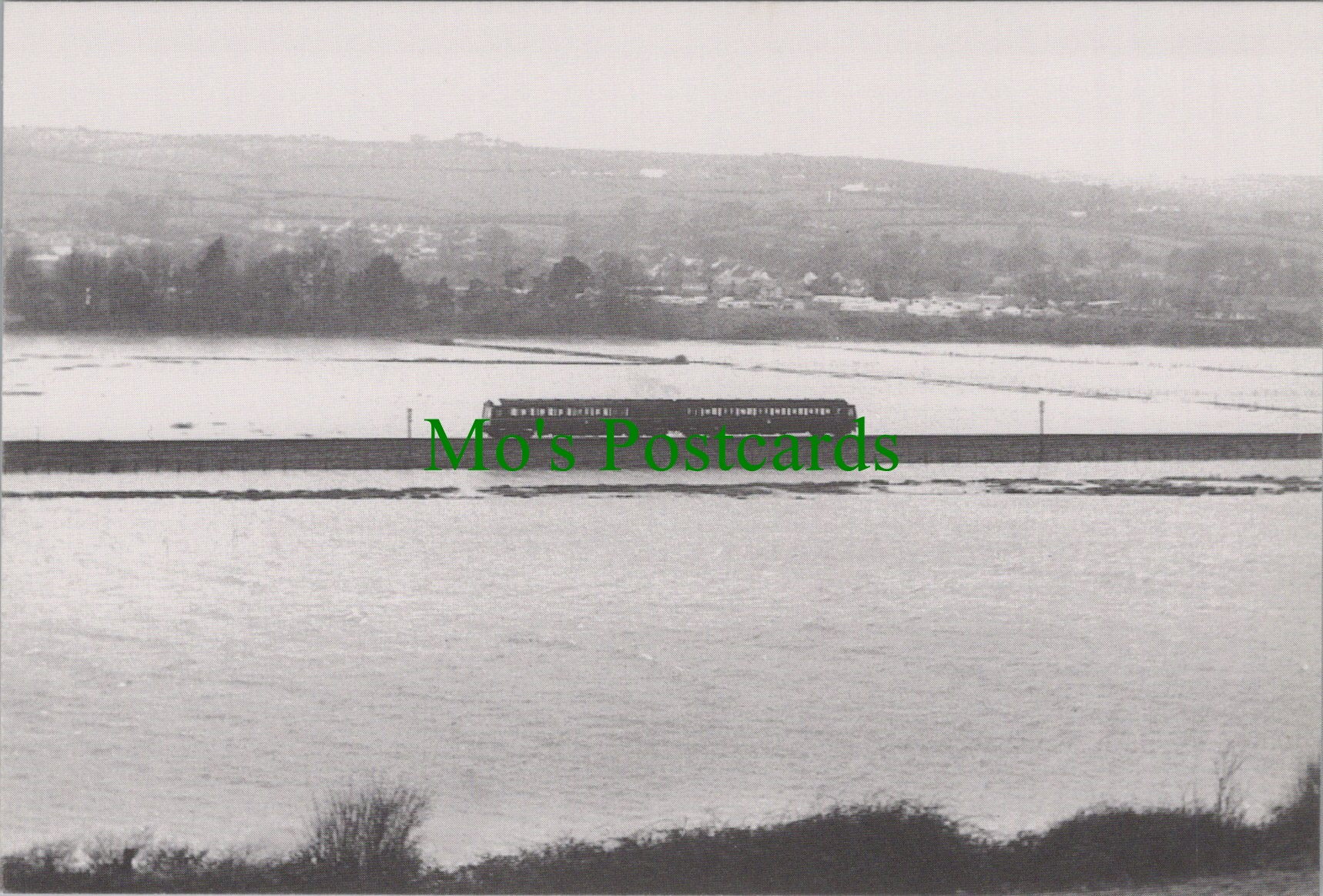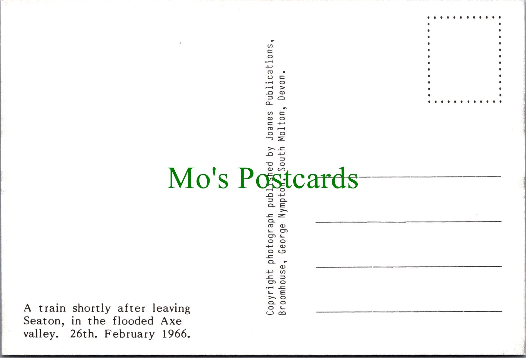This is a postcard of A Train Shortly After Leaving Seaton, in The Flooded Axe Valley in 1966.