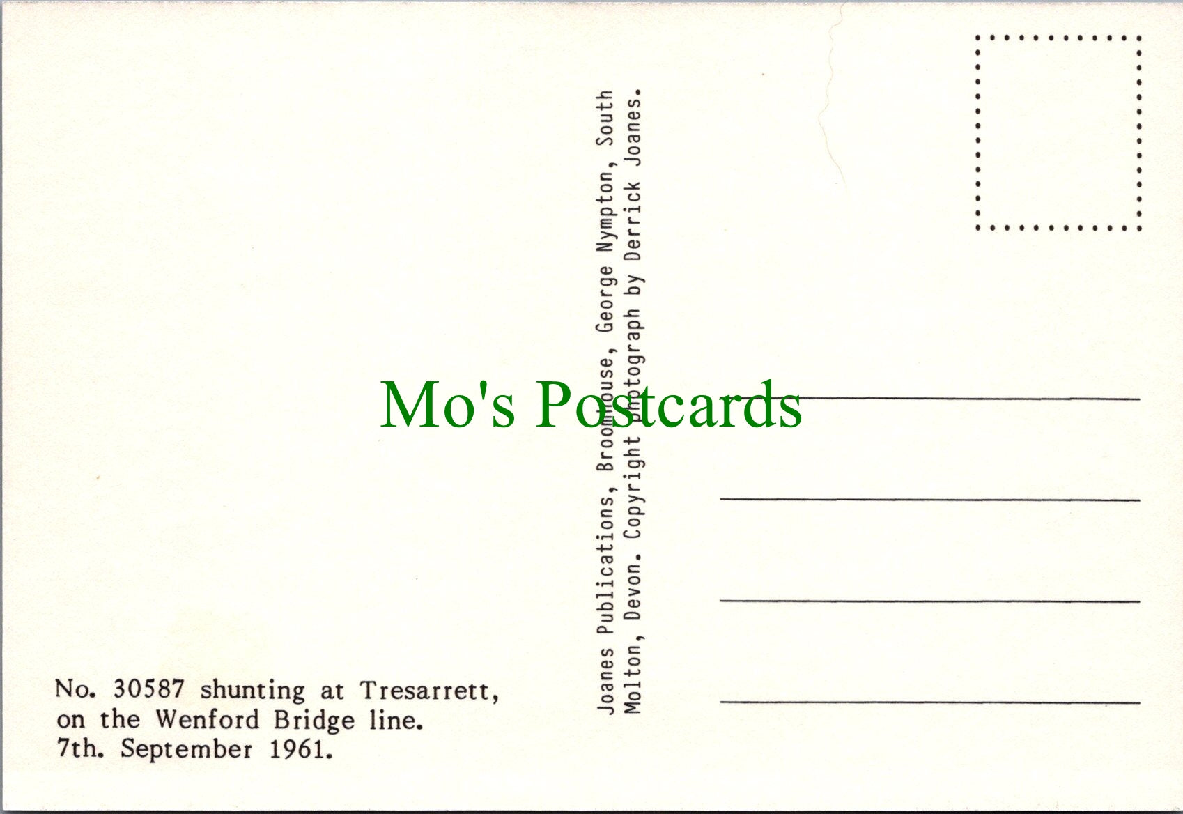 This is a postcard of Engine No 30587 Shunting at Tresarrett, on The Wenford Bridge Line in 1961.