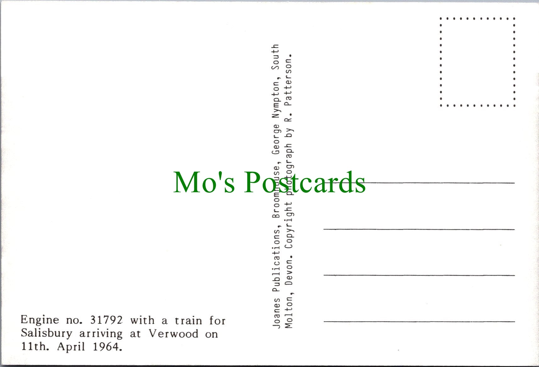 All of our postcards are posted to you inside a plastic sleeve and a board backed envelope which will be marked 'Please do not bend'. The 'Mo's Postcards' watermark does not appear on the actual postcard'.