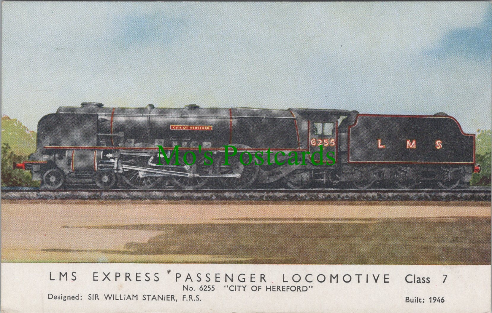 This is a postcard of LMS Express Passenger Locomotive "City of Hereford". No 6255