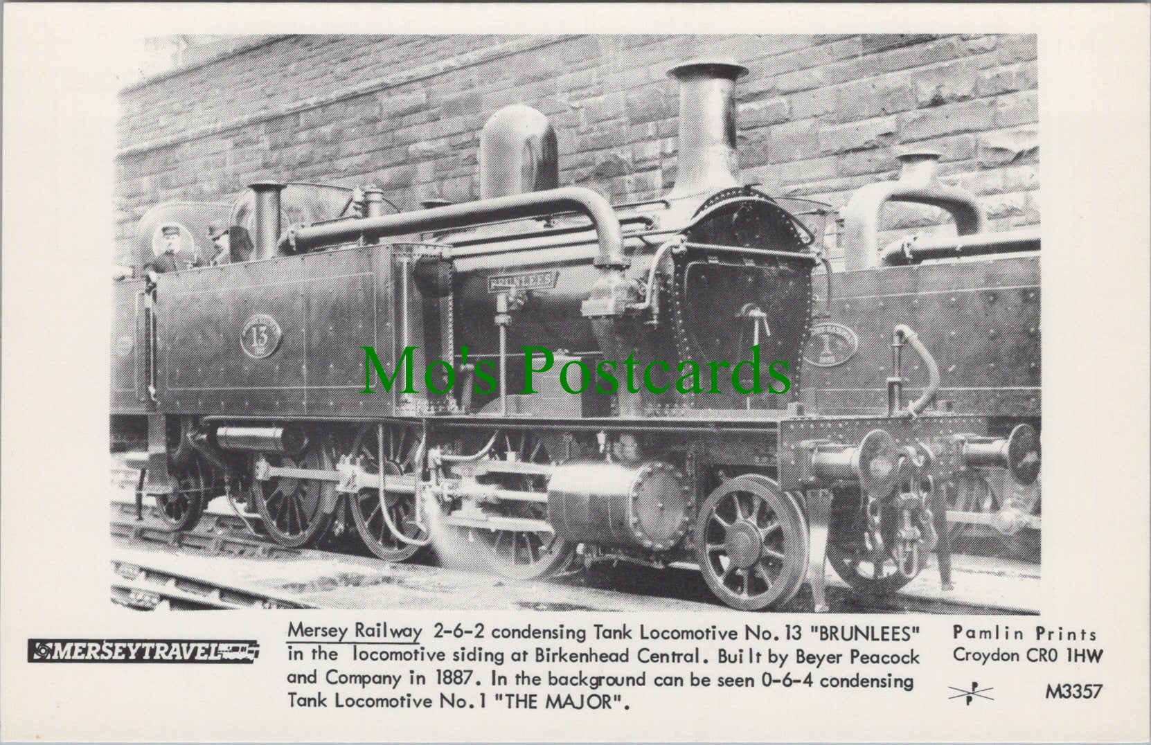 Mo's Ref:  Mersey Railway Postcard - Birkenhead Central, Locomotive 13 "Brunlees" SW11602