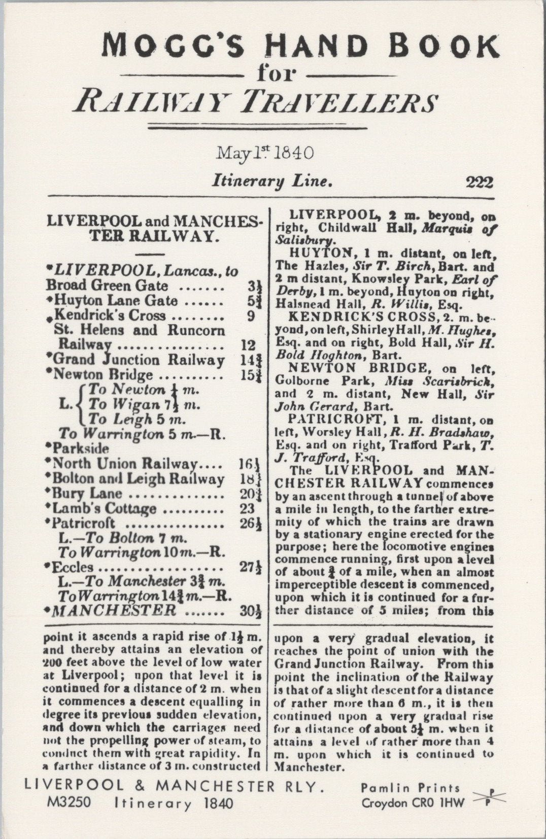 Mo's Ref:  Rail Transport Postcard-Mogg's Hand Book For Railway Travellers SW17644
