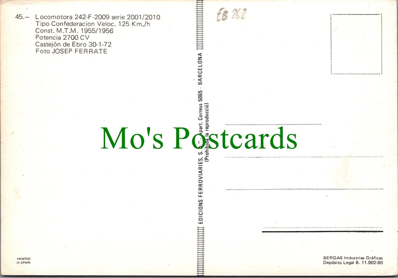 Mo's Ref: Railway Transport Postcard -Locomotora 242-F-2009, Potencia 2700 CV - RR15575
