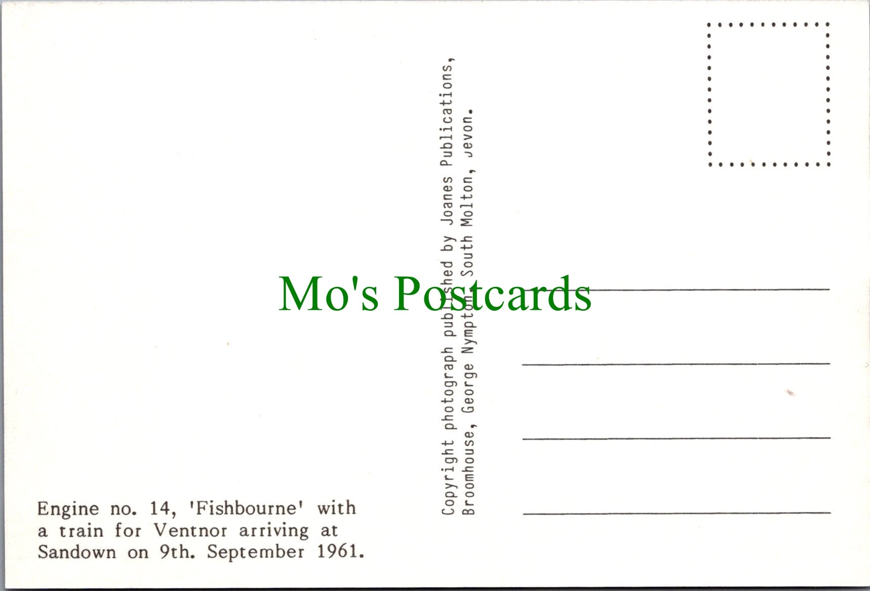 Railways Postcard - Engine no 14 ' Fishbourne' with a train for Ventnor arriving at Sandown on 9th September 1961.
