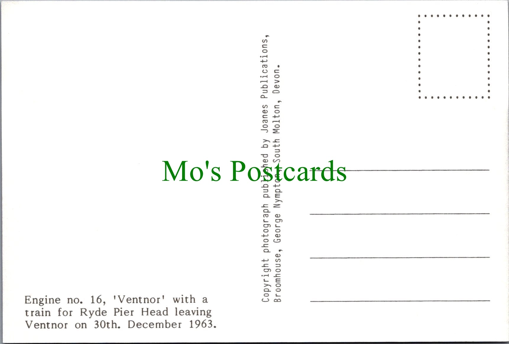 Railways Postcard - Engine no 16 'Ventnor' with a train for Ryde Pier Head leaving Ventnor on 30th December 1963.