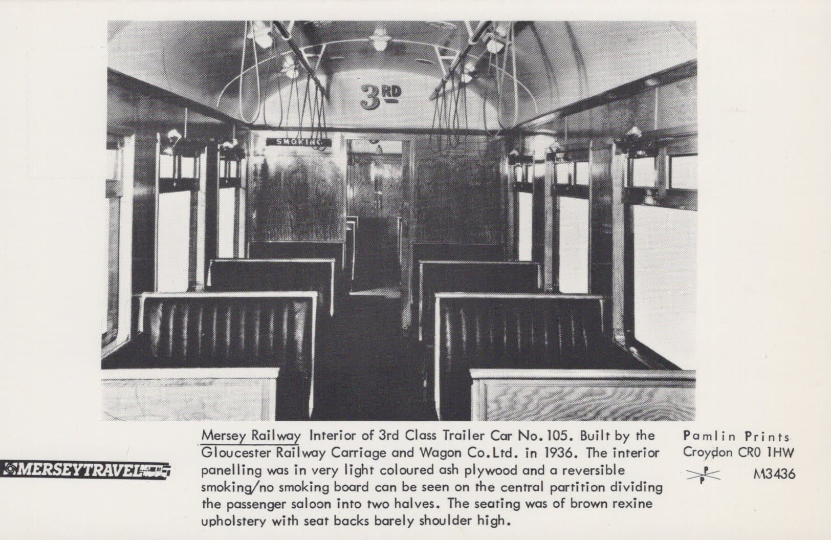 Railways Postcard - Mersey Travel - Mersey Railway, Interior of 3rd Class Trailer Car No 105 - Mo’s Postcards