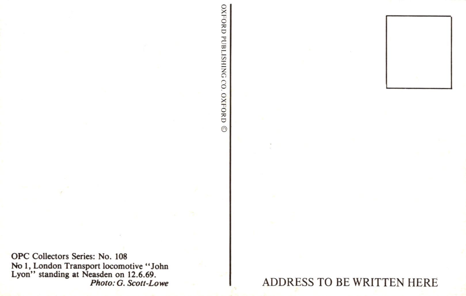 Railways Postcard - No 1, London Transport Locomotive "John Lyon" at Neasden SW1510