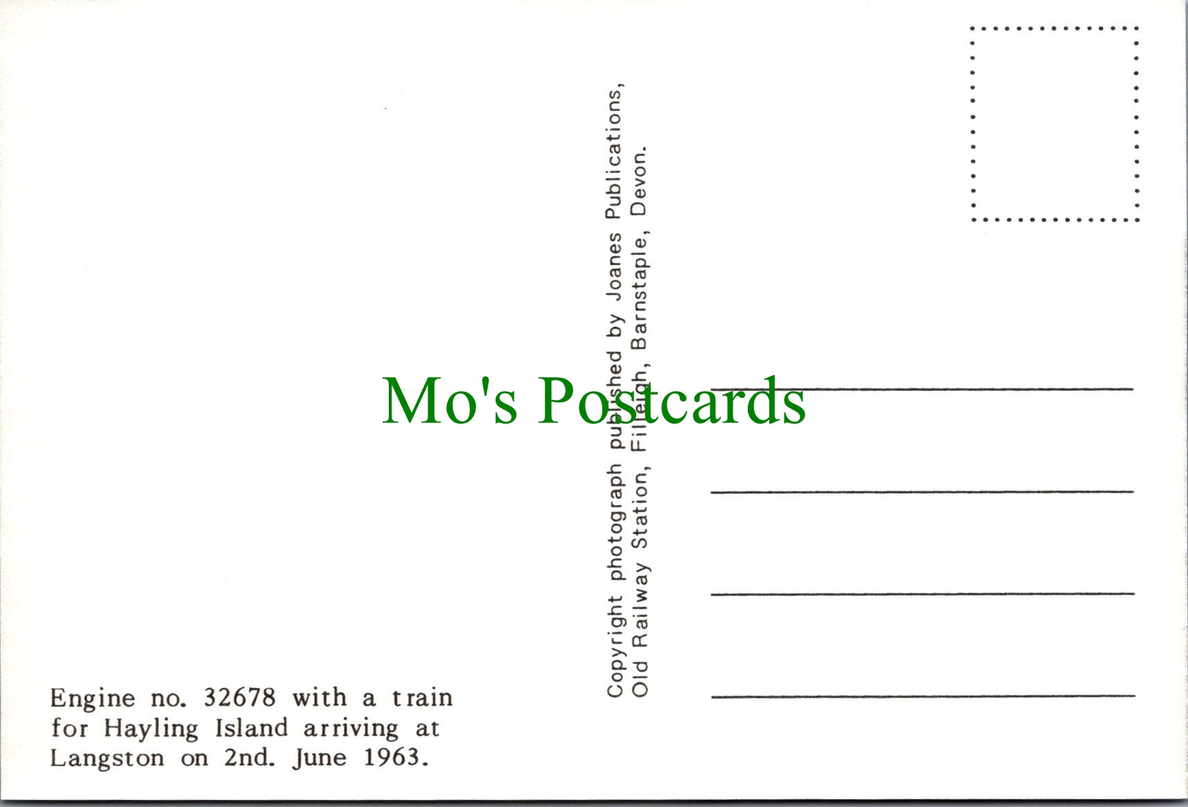 Railways Postcard - Train at Langston. Engine no 32678 with a train for Hayling Island arriving at Langston on 2nd June 1963.