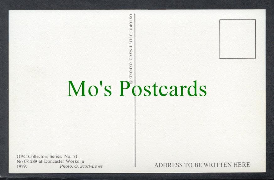 Mo's Postcards offers for sale a postcard showing a Railways Postcard - Train No 08 289 at Doncaster Works in 1979.