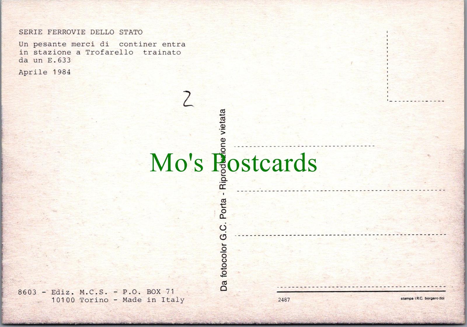 Mo's Ref: Railways Postcard - Trains - Un Pesante Merci Di Continer Entra in Stazione a Trofarello Trainato Da Un E.633 Ref.RR15881