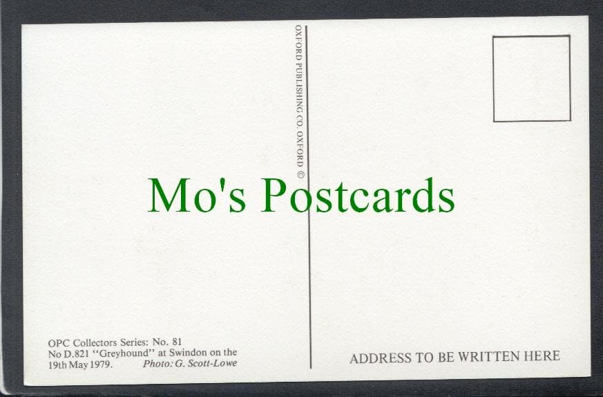 Mo's Postcards offers for sale postcard showing a Railways Postcard -"Greyhound" Train at Swindon.