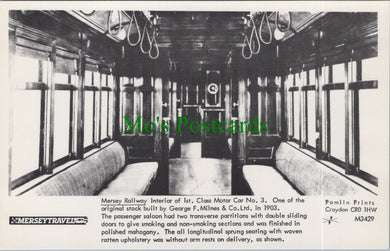 Train Postcard - Mersey Railway Interior of 1st Class Motor Car SW11741