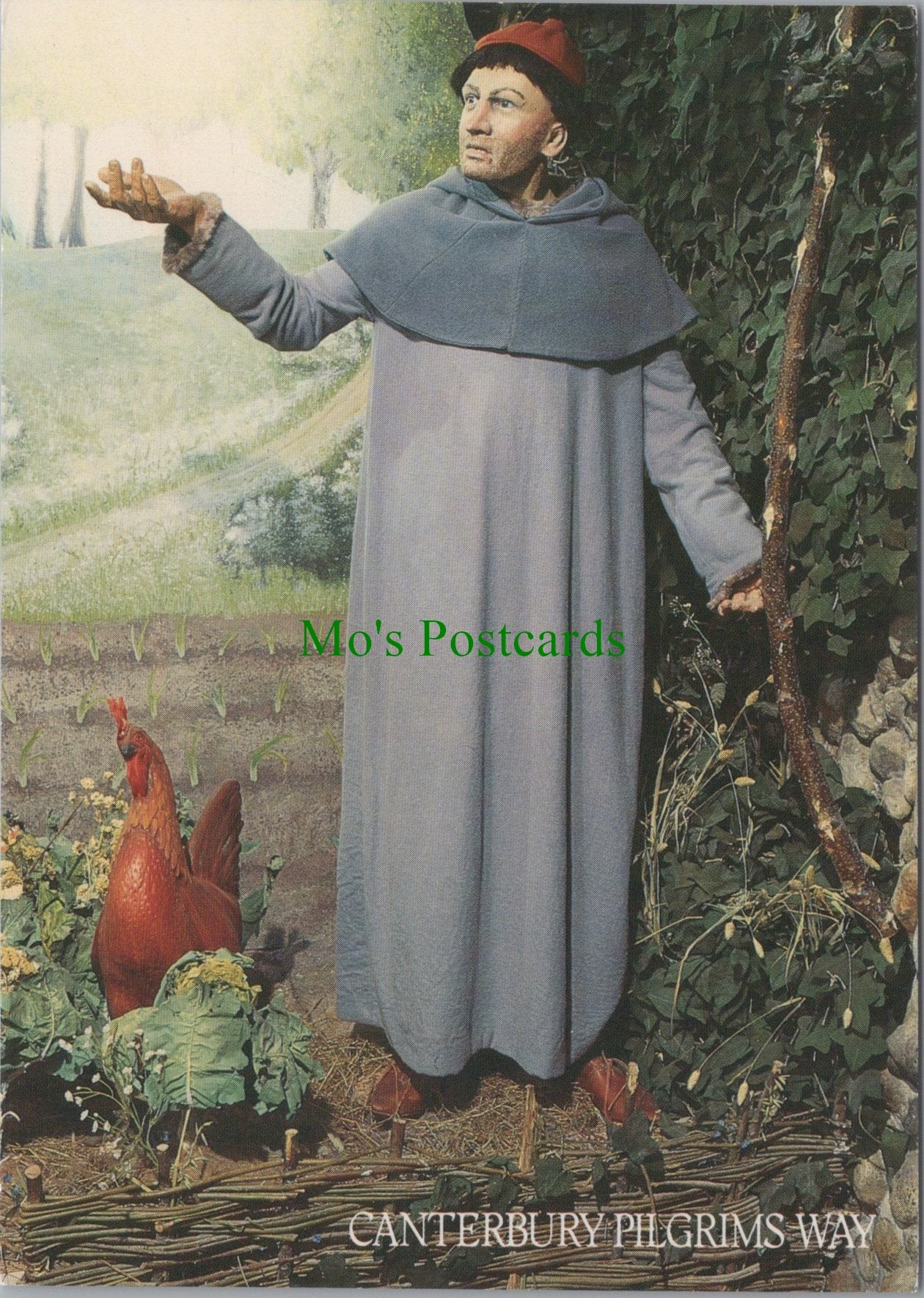 This is a postcard of a Nun's Priest Waxwork, Canterbury Pilgrims Way