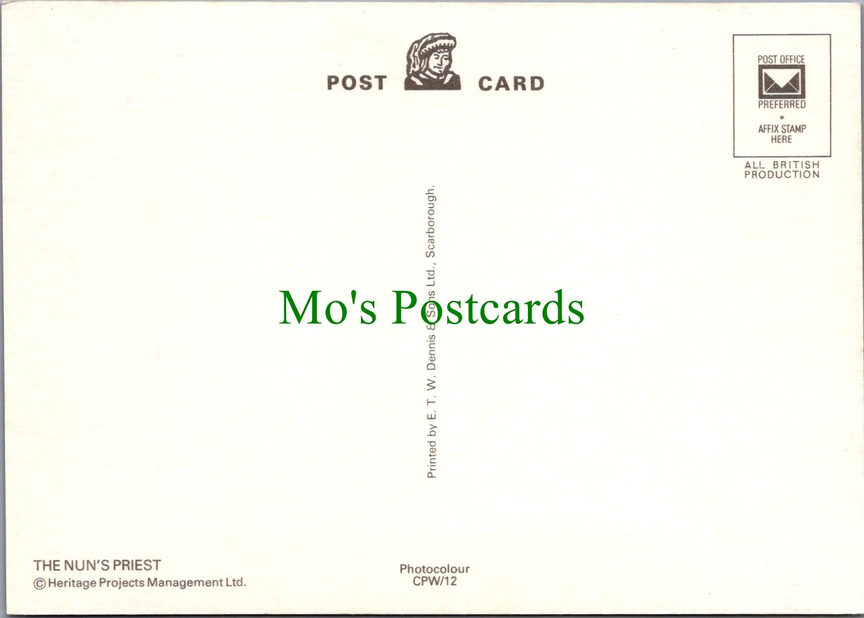 All of our postcards are posted to you inside a plastic sleeve and a board backed envelope which will be marked 'Please do not bend'. The 'Mo's Postcards' watermark does not appear on the actual postcard'.