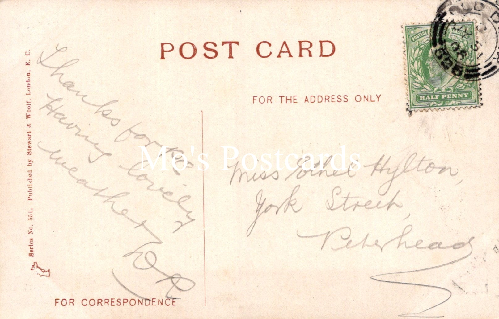 The 'Mo's Postcards' watermark does not appear on the actual postcard'.