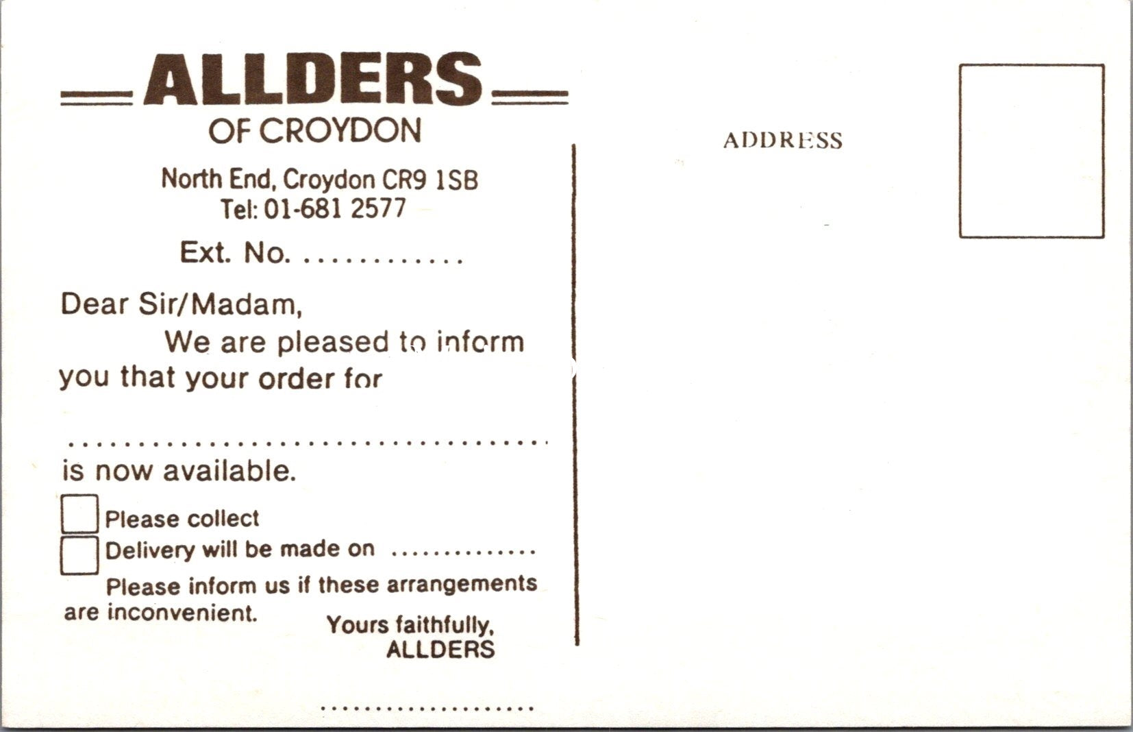 This is a London Postcard - Allders Delivery Service, Croydon SW17702