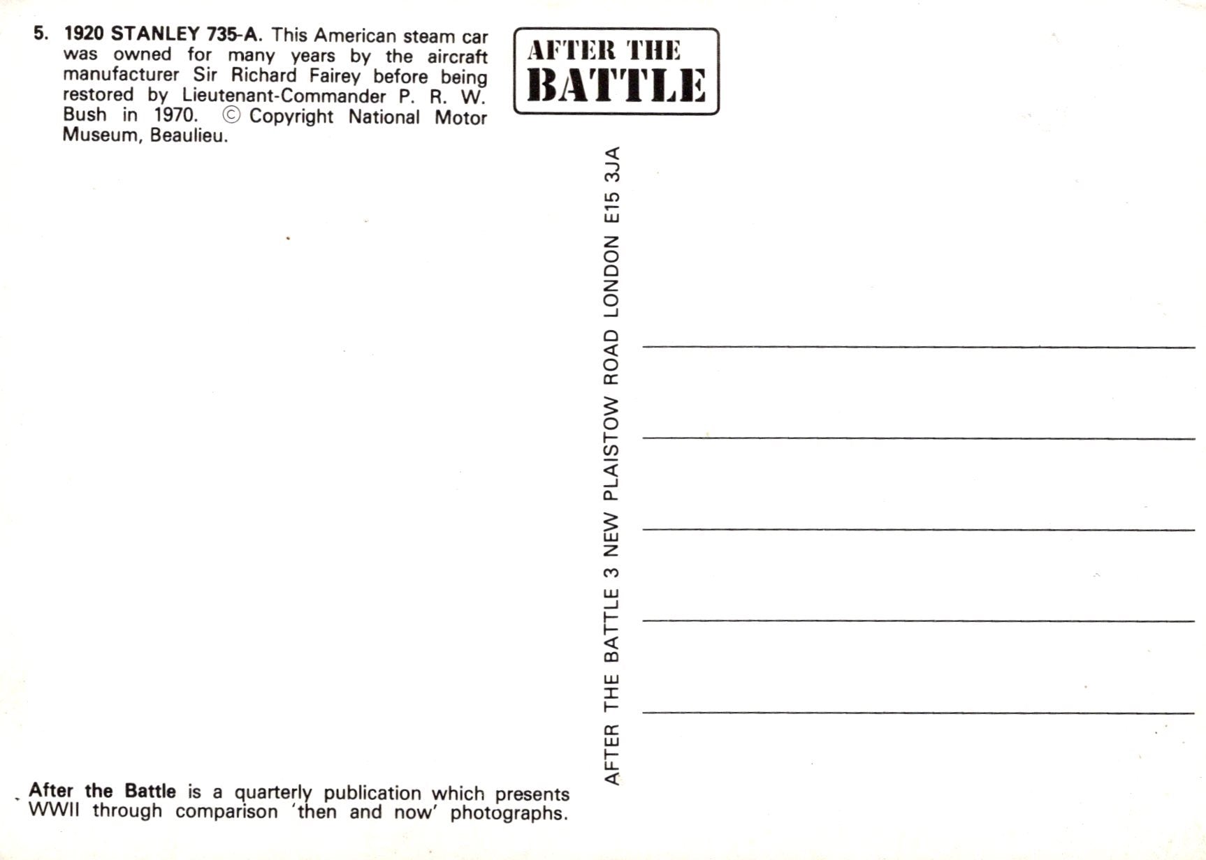 This is a Road Transport Postcard - 1920 Stanley 735-A American Steam Car SW18102