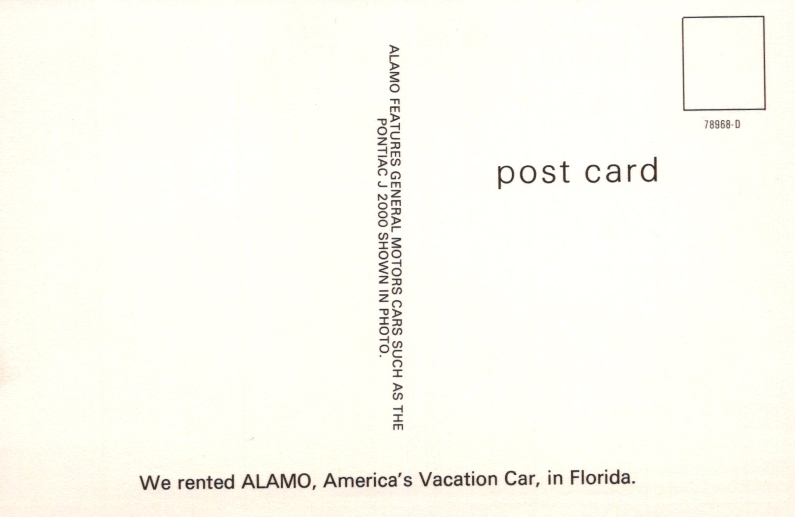 This is a Road Transport Postcard - Alamo, America's Vacation Car in Florida. The Pontiac J 2000 - SW20610