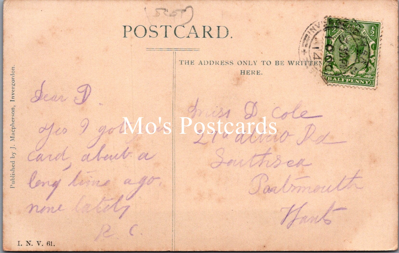 The 'Mo's Postcards' watermark does not appear on the actual postcard'.