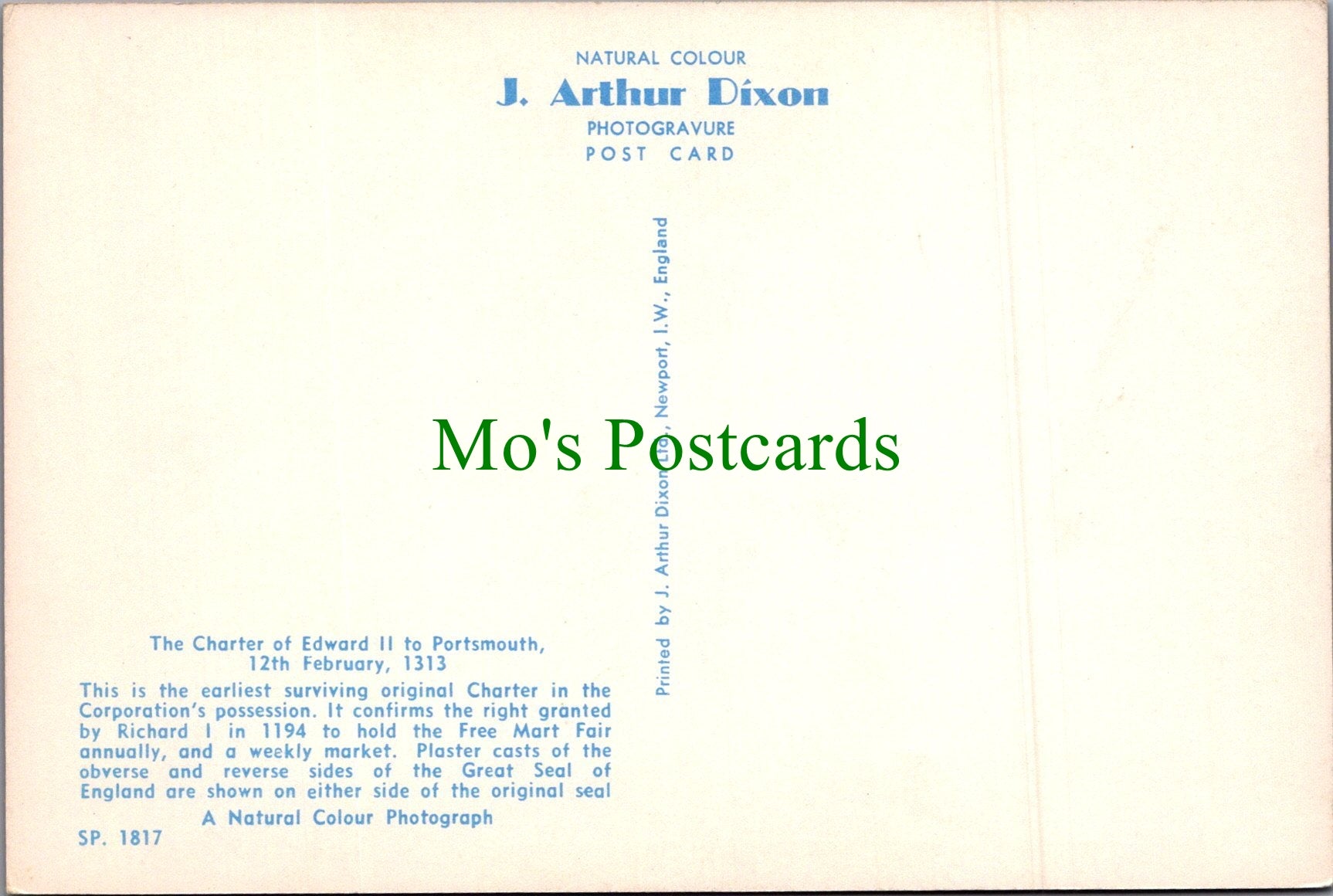 The 'Mo's Postcards' watermark does not appear on the actual postcard'.
