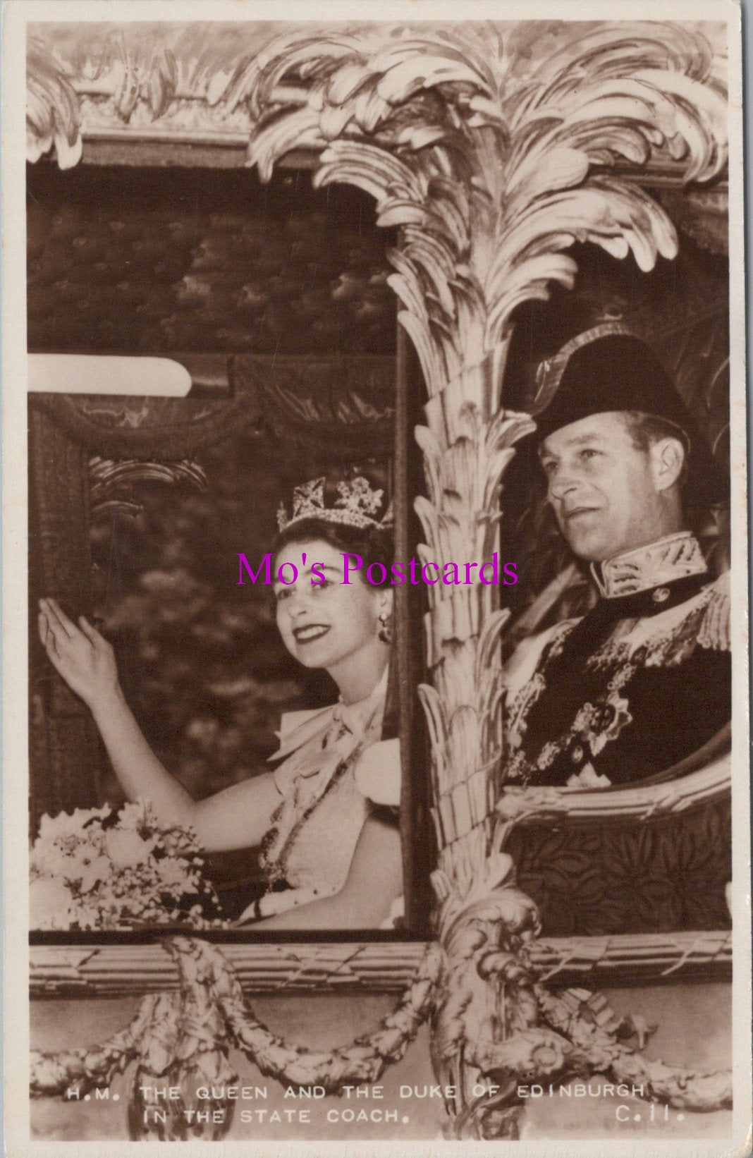 This is a Royalty Postcard - The Queen and The Duke of Edinburgh in The State Coach SW14272