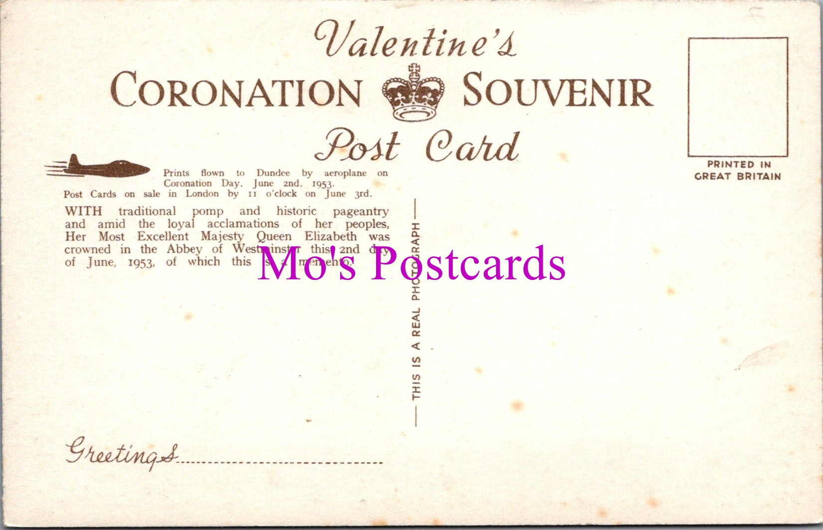 The 'Mo's Postcards' watermark does not appear on the actual postcard'.
