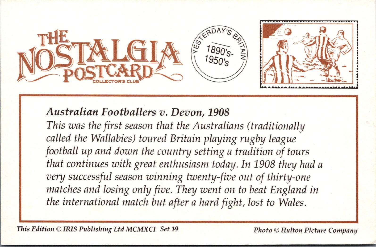 Mo's Ref: Nostalgia Postcard - Australian Footballers v Devon, 1908 - SW16519