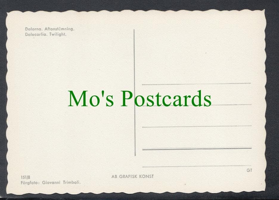 Mo's Postcards offers for sale a postcard showing Dalarna, Aftonstamning, Sweden.