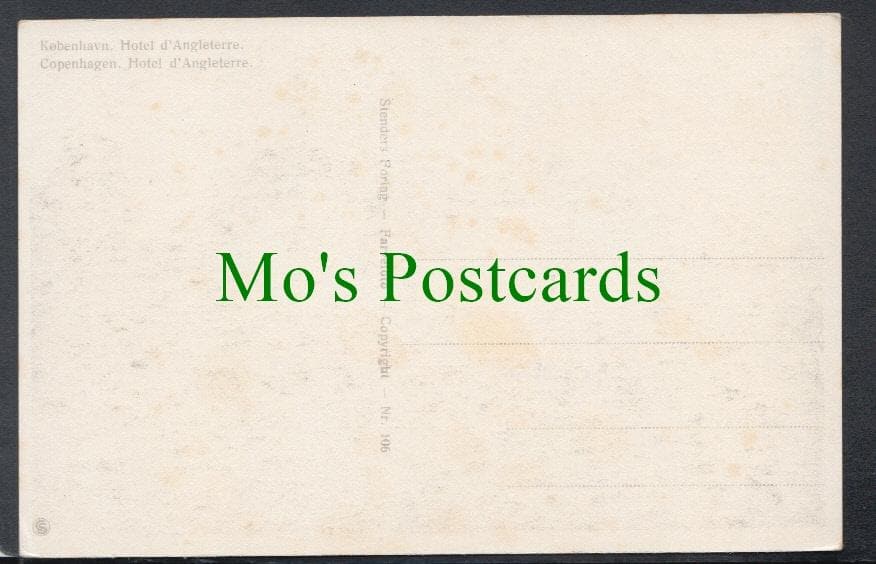 Mo's Postcards offers for sale a postcard showing Hotel d'Angleterre, Copenhagen, Denmark