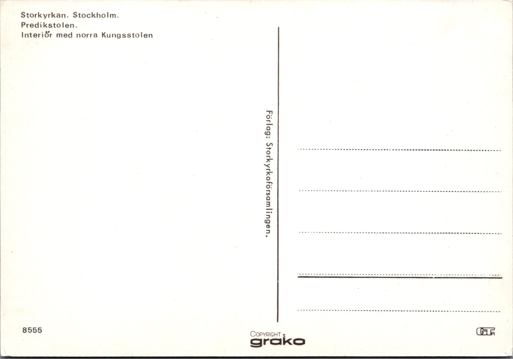 This is a Sweden Postcard - Stockholm, Storkyrkan, Predikstolen SW10257