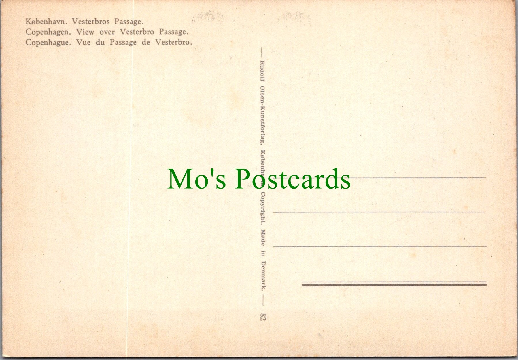 All of our postcards are posted to you inside a plastic sleeve and a board backed envelope which will be marked 'Please do not bend'. The 'Mo's Postcards' watermark does not appear on the actual postcard'.
