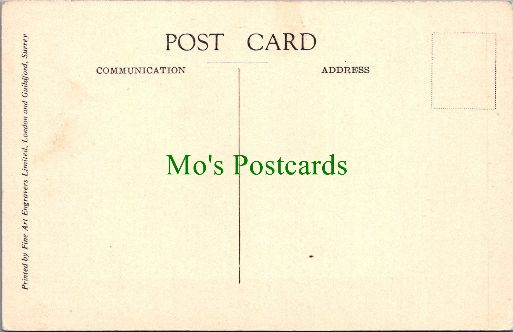 All of our postcards are posted to you inside a plastic sleeve and a board backed envelope which will be marked 'Please do not bend'. The 'Mo's Postcards' watermark does not appear on the actual postcard'.