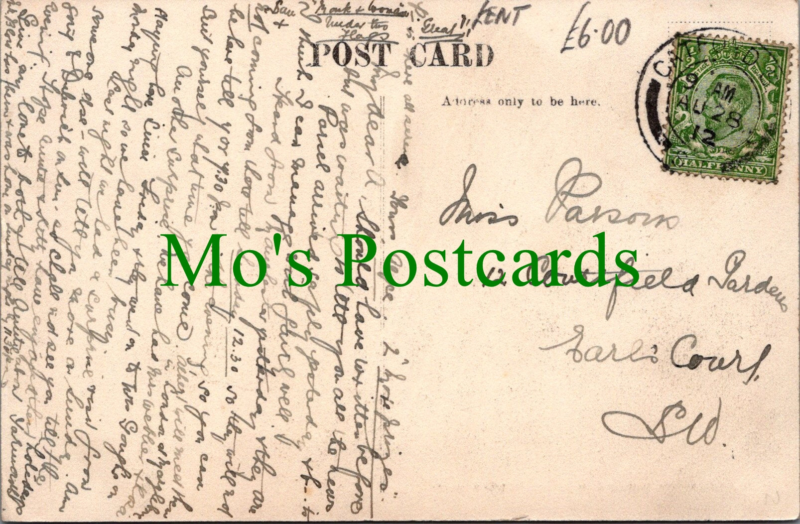 All of our postcards are posted to you inside a plastic sleeve and a board backed envelope which will be marked 'Please do not bend'. The 'Mo's Postcards' watermark does not appear on the actual postcard'.