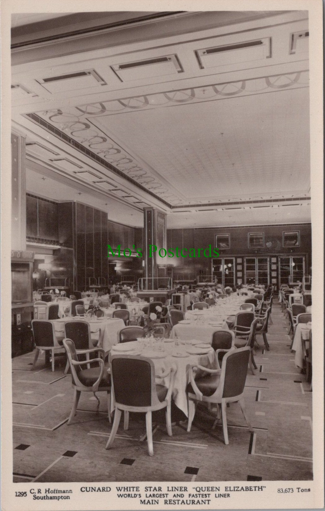 Cunard White Star Liner "Queen Elizabeth". Main Restaurant. This is a fantastic standard sized postcard which would be a great addition to your postcard collection. Published by C.R.Hoffman