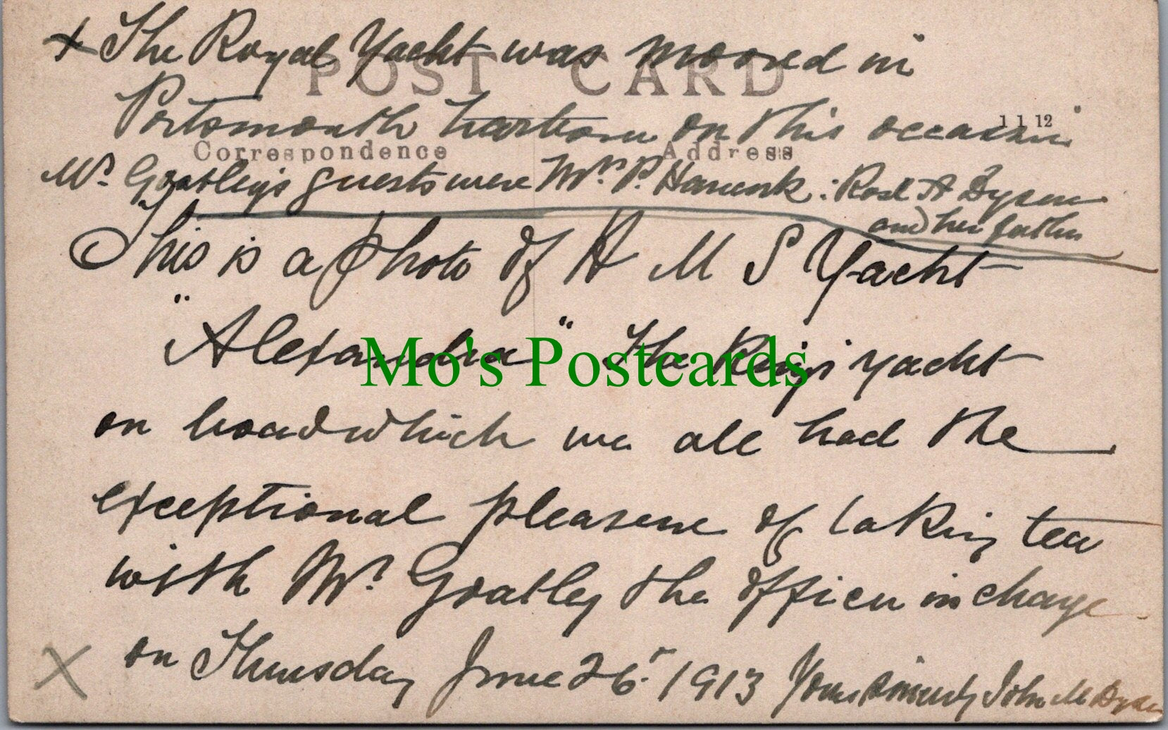 This is a postcard of H.M.S Yacht "Alexandra", The Kings Yacht
