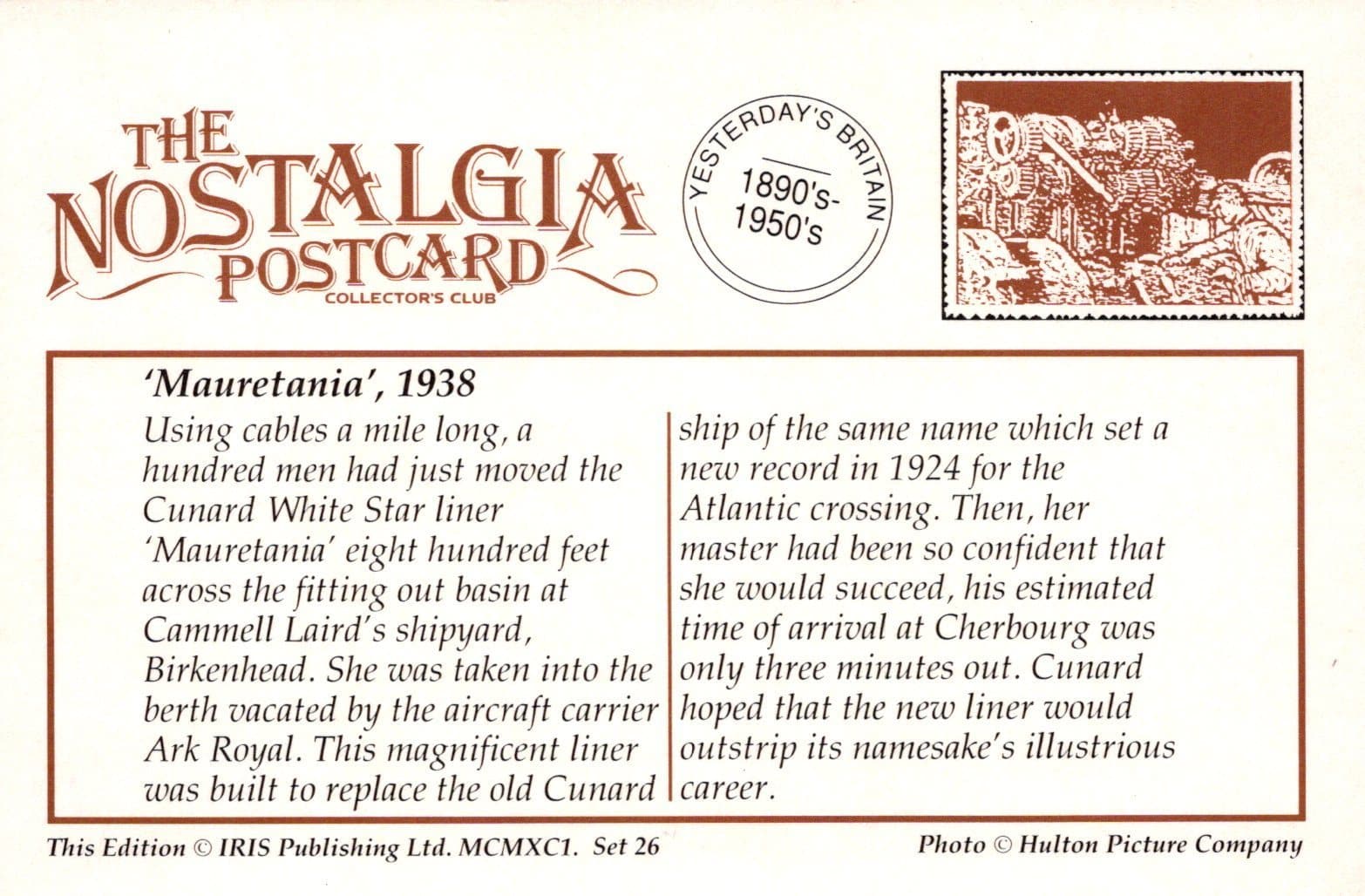 Nostalgia Postcard - Cunard White Star Liner 'Mauretania', 1938 - SW1082
