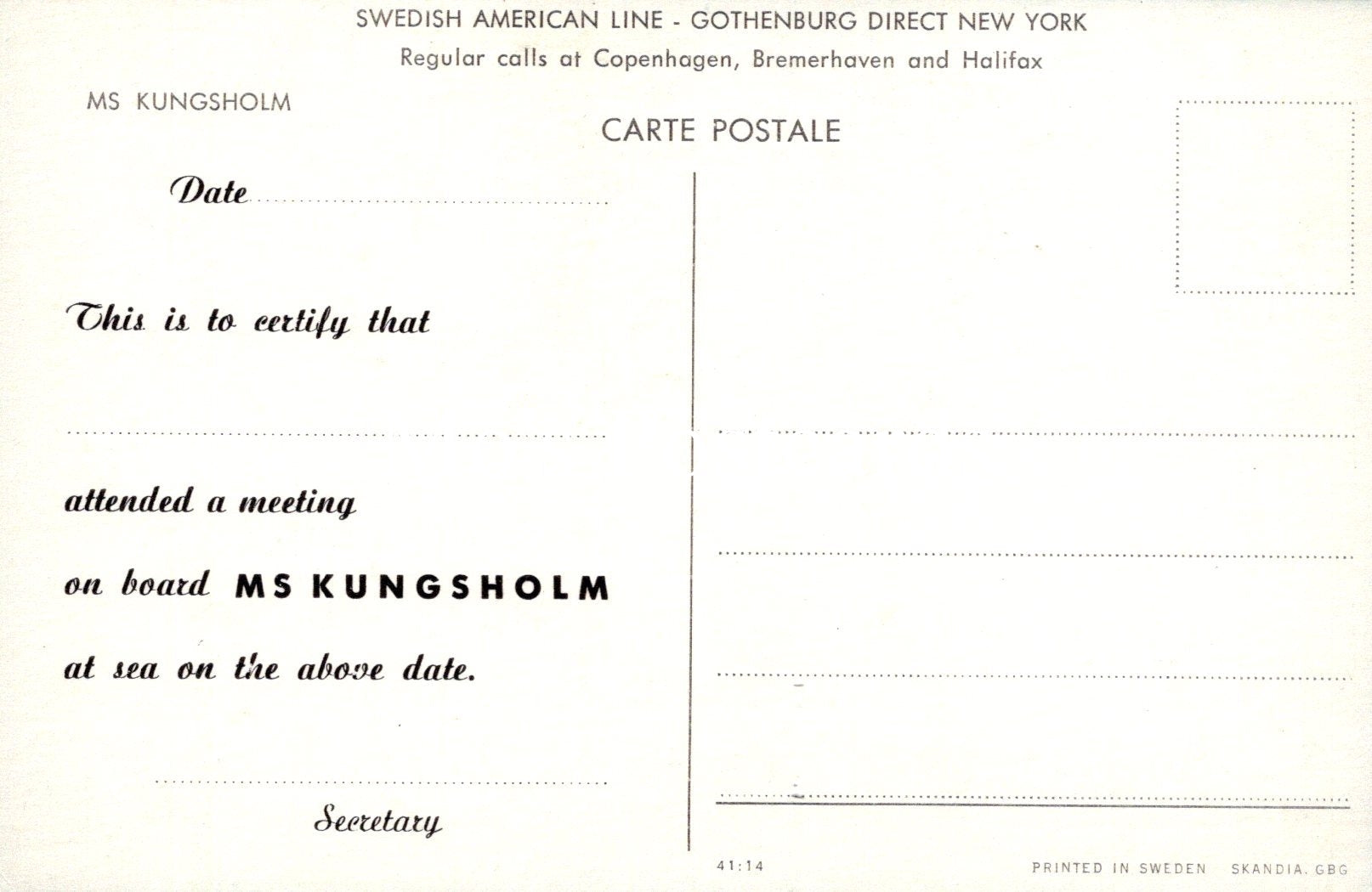 This is a Shipping Postcard - MS Kungsholm, Swedish American Line SW18703