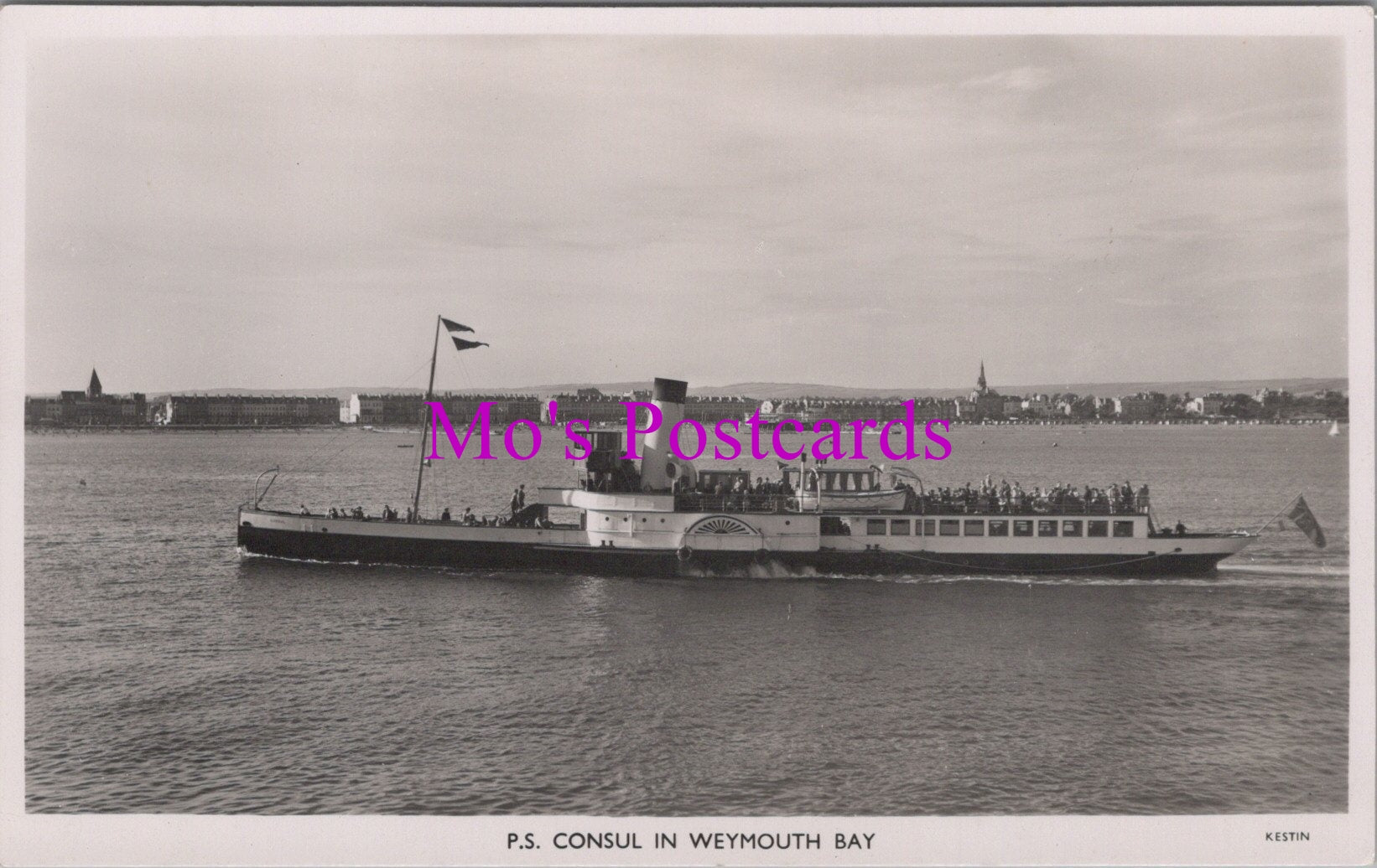 Mo's Ref:  Shipping Postcard - Paddle Steamer Consul in Weymouth Bay  SW14637