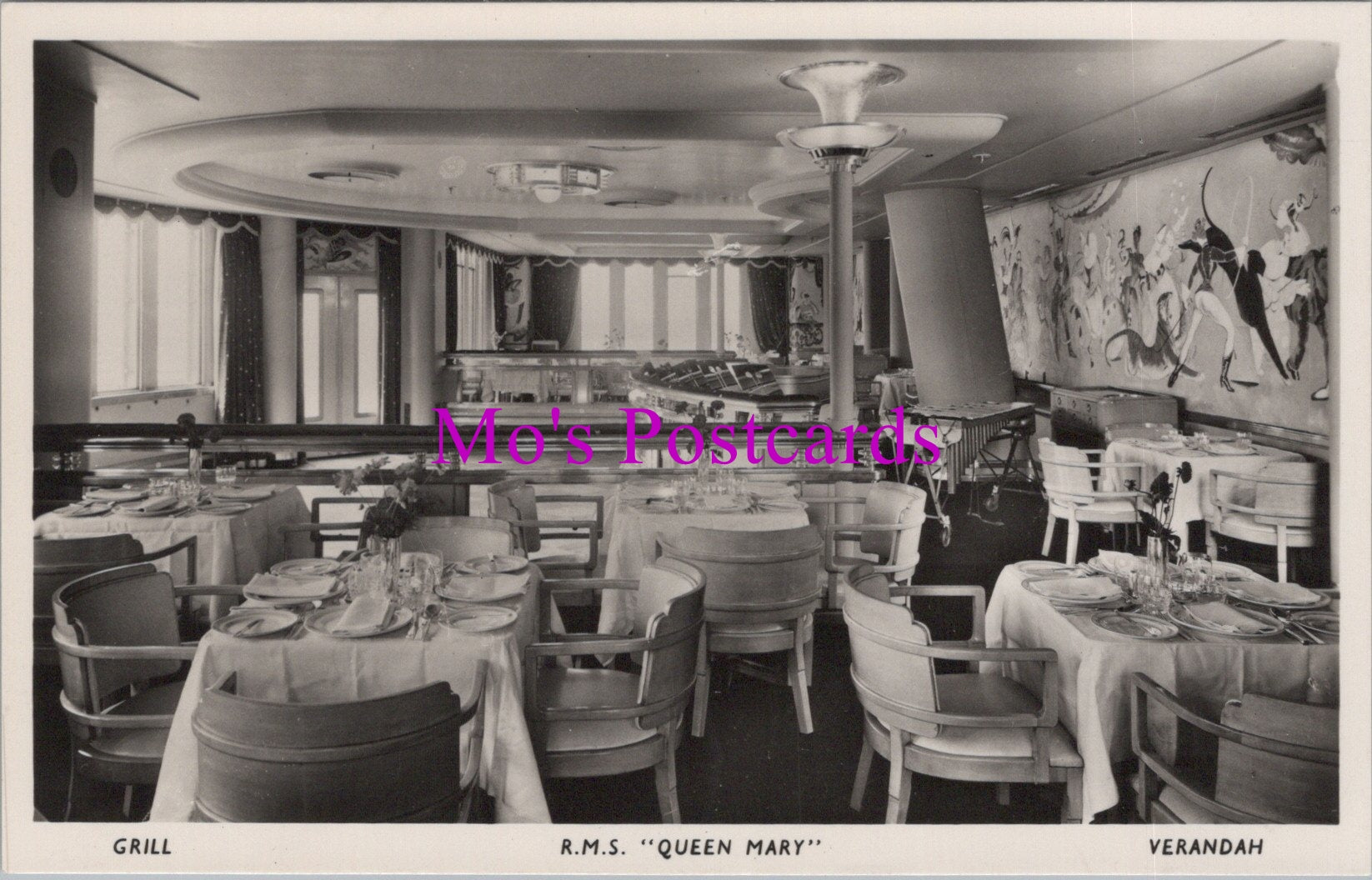 Mo's Ref:  Shipping Postcard - R.M.S."Queen Mary" Ocean Liner. Verandah Grill SW14935