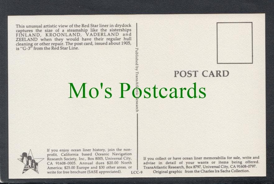 Mo's Postcards offers for sale a Shipping Postcard - Red Star Liner in Dry Dock.