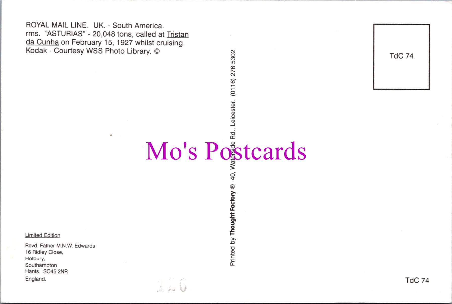 Mo's Ref: Shipping Postcard - Royal Mail Line, RMS "Asturias" SW15252