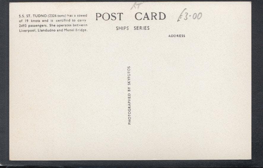 Shipping Postcard - S.S."St Tudno" Steam Boat - Mo’s Postcards