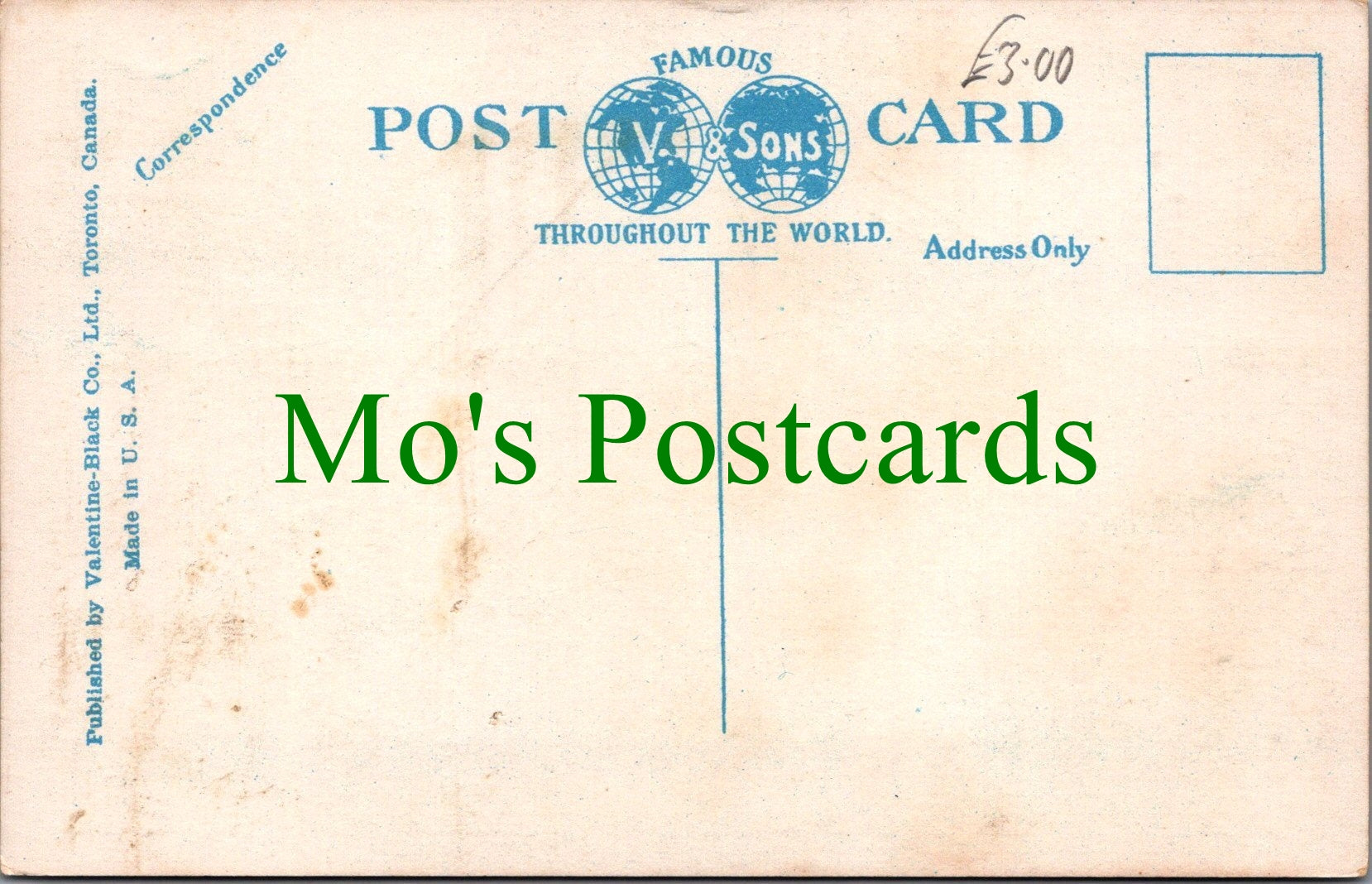 All of our postcards are posted to you inside a plastic sleeve and a board backed envelope which will be marked 'Please do not bend'. The 'Mo's Postcards' watermark does not appear on the actual postcard'.