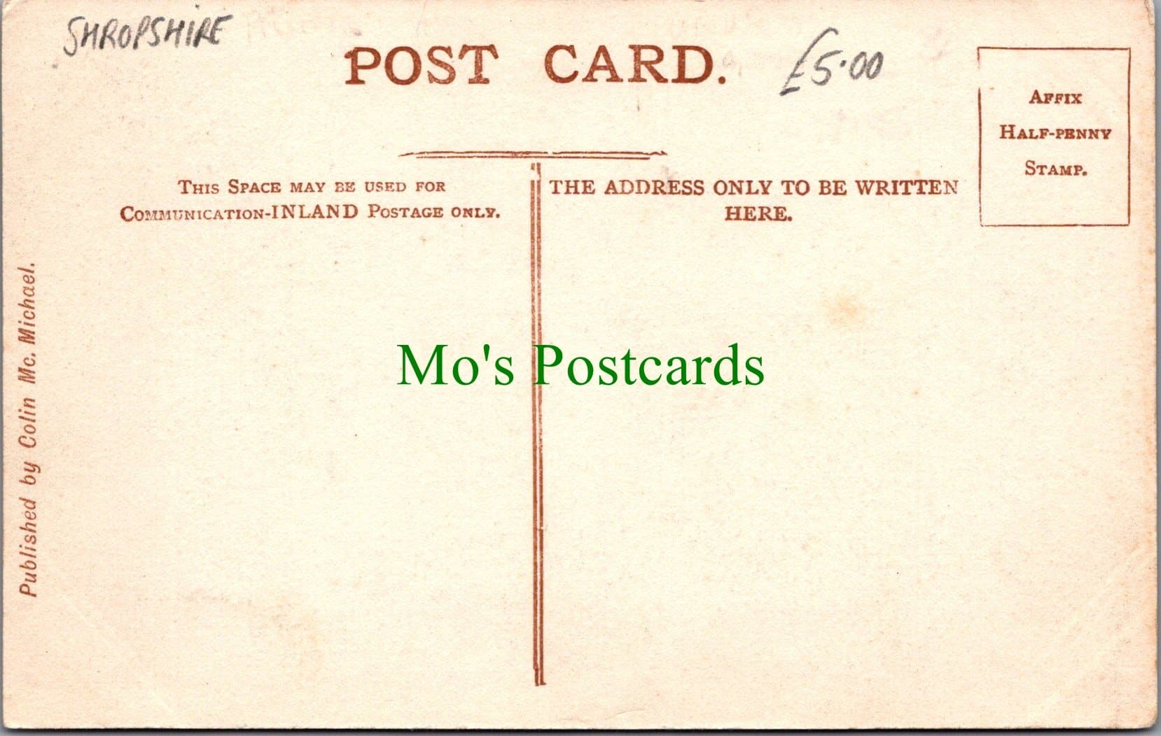Standard size postcard. Published by Colin McMichael. Couple of slight surface creases.