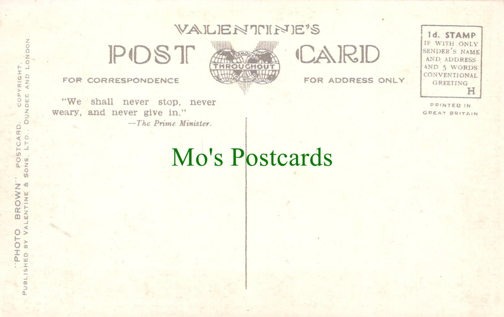 All of Mo's Postcards are protected inside a plastic sleeve and are shipped inside a board backed envelope which is marked please do not bend.