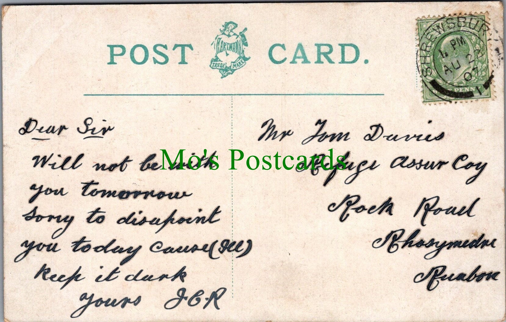 The 'Mo's Postcards' watermark does not appear on the actual postcard'.