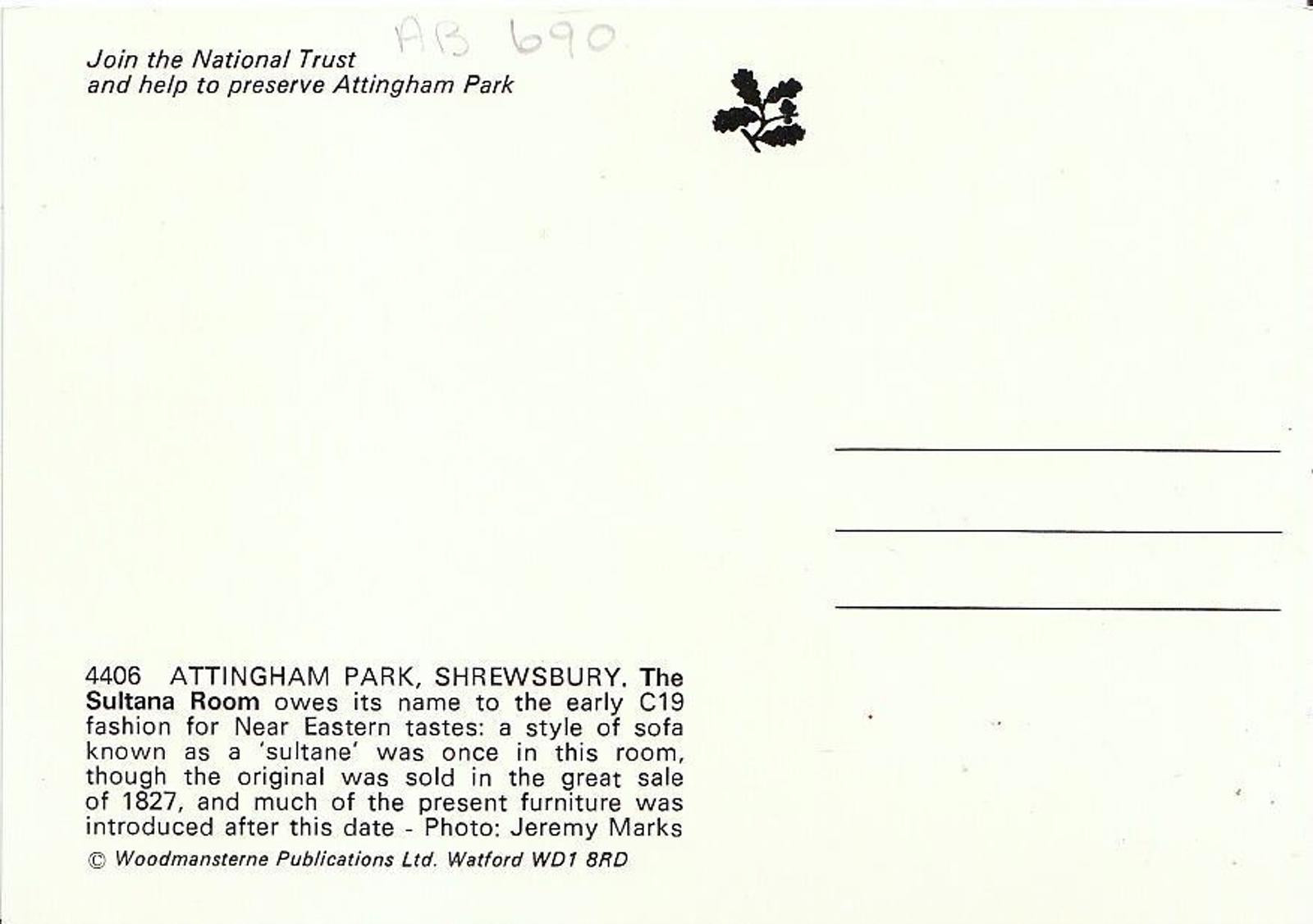 Shropshire Postcard - The Sultana Room, Attingham Park, Shrewsbury