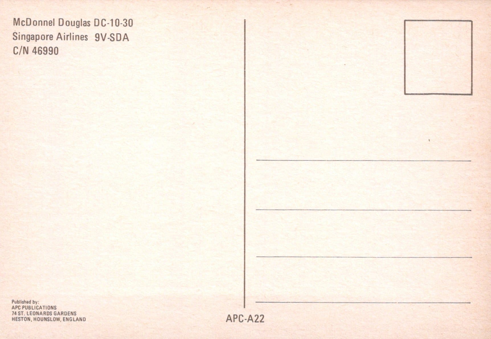 Aviation Postcard - McDonnel Douglas DC-10-30 Singapore Airlines Aeroplane SW2504