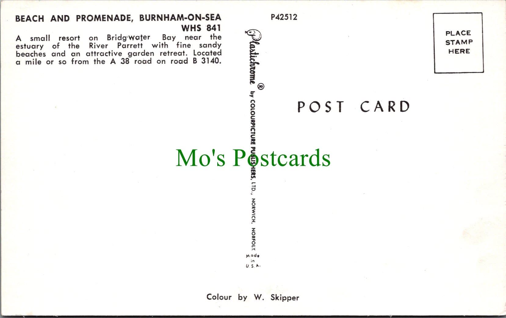 Postcard showing the Beach and Promenade, Burnham-On-Sea.
