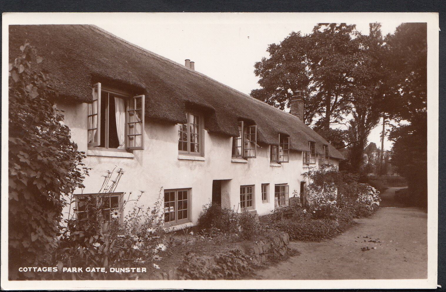 This is a Somerset Postcard - Cottages Park Gate, Dunster G705